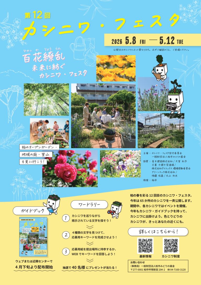 共催:カシニワ・フェスタ2026実行委員会、一般財団法人柏市みどりの基金